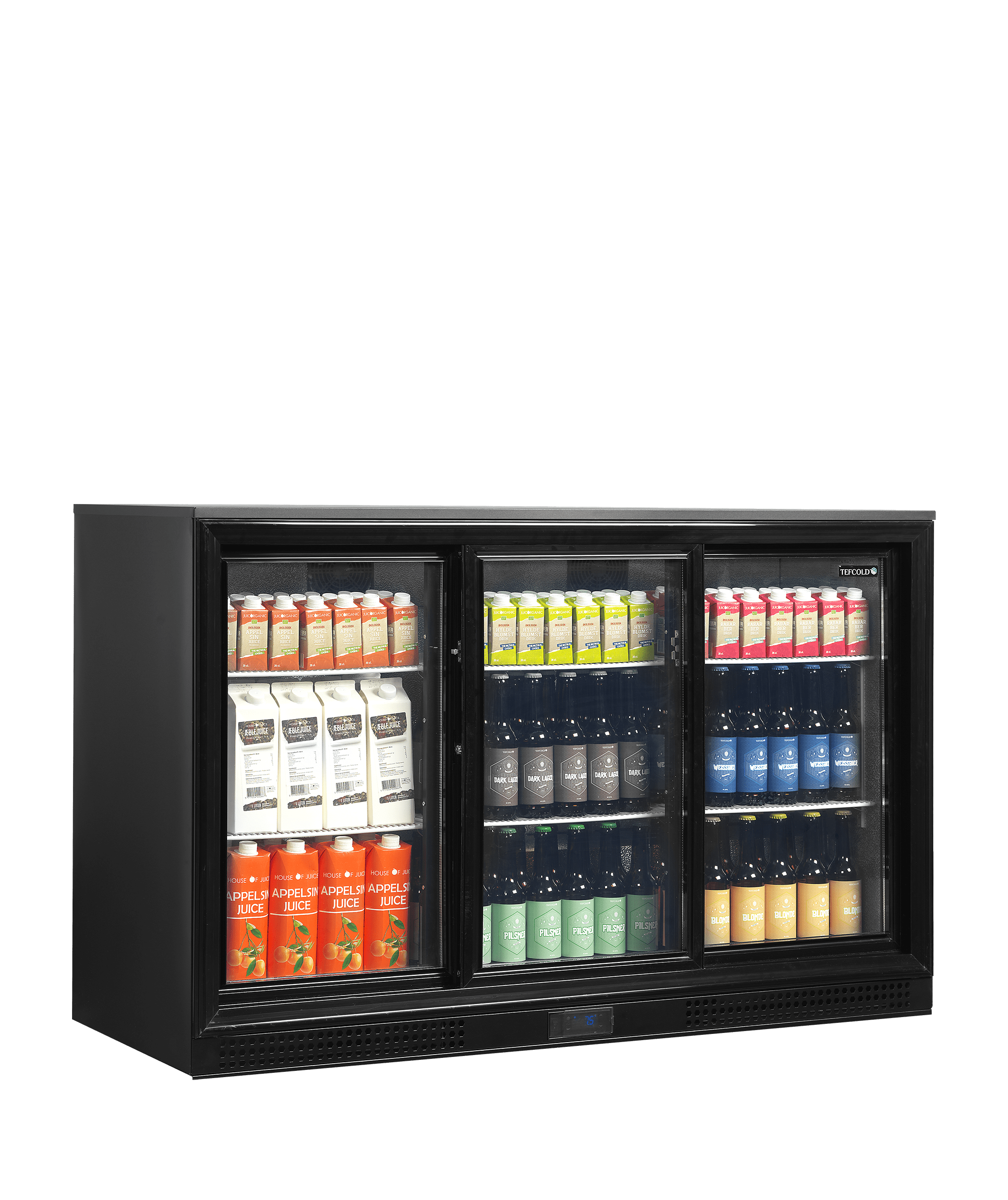 La gamme DB d’arrière-bars est disponible est version 1, 2 ou 3 portes en double vitrage. Portes battantes ou coulissantes. L’arrière-bar réfrigéré possède une finition extérieure noire, une finition intérieure aluminium gauffré, et des clayettes blanches pour faciliter l’entretien. Il est à froid ventilé régulé par un thermostat électronique. Idéal pour les bars à forte activité.