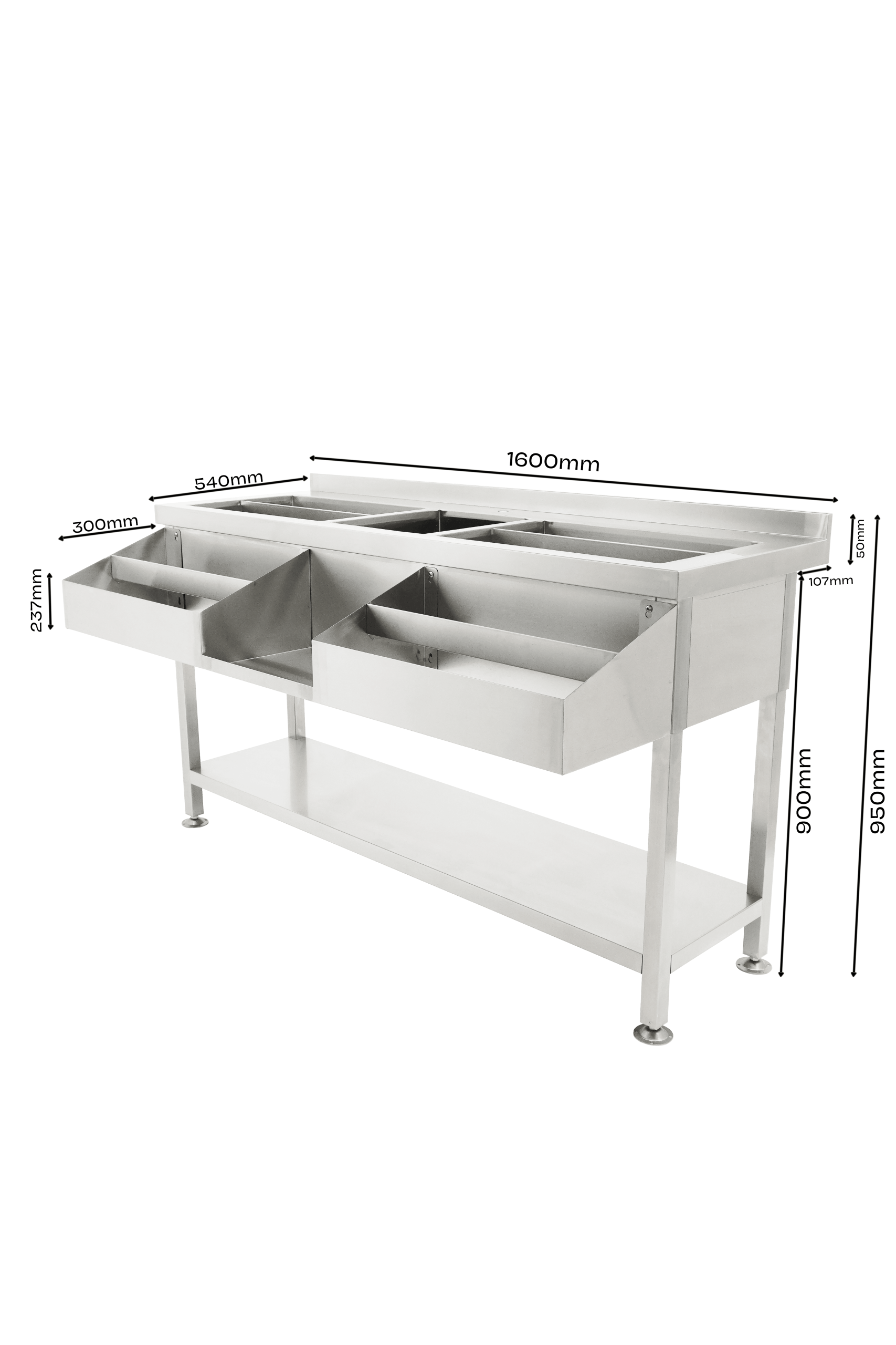 - Construction en acier inoxydable : durable, hygiénique et facile à nettoyer.