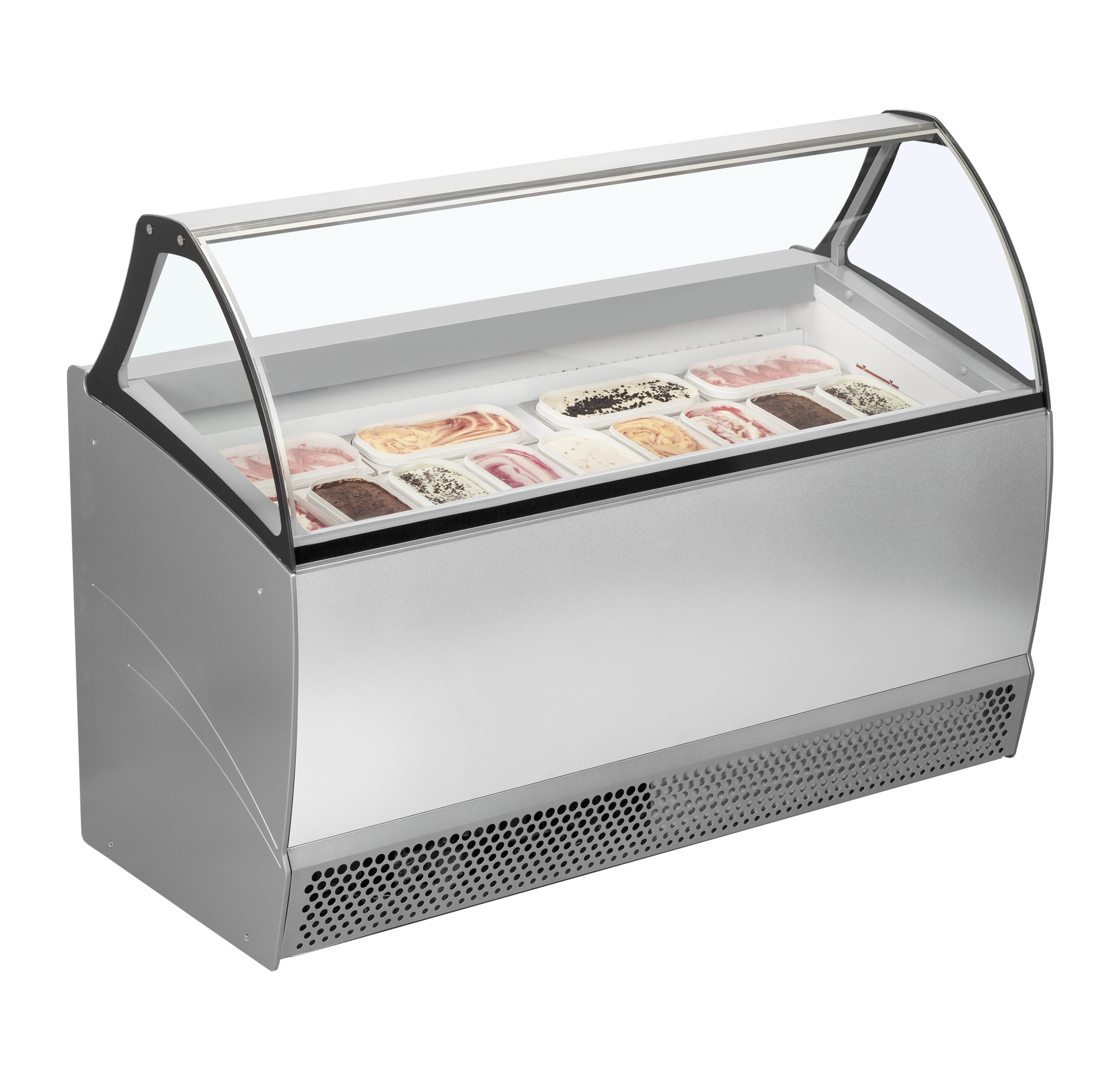 Vitrine professionnelle à froid ventilé pour 16 bacs de glace avec façade bombée