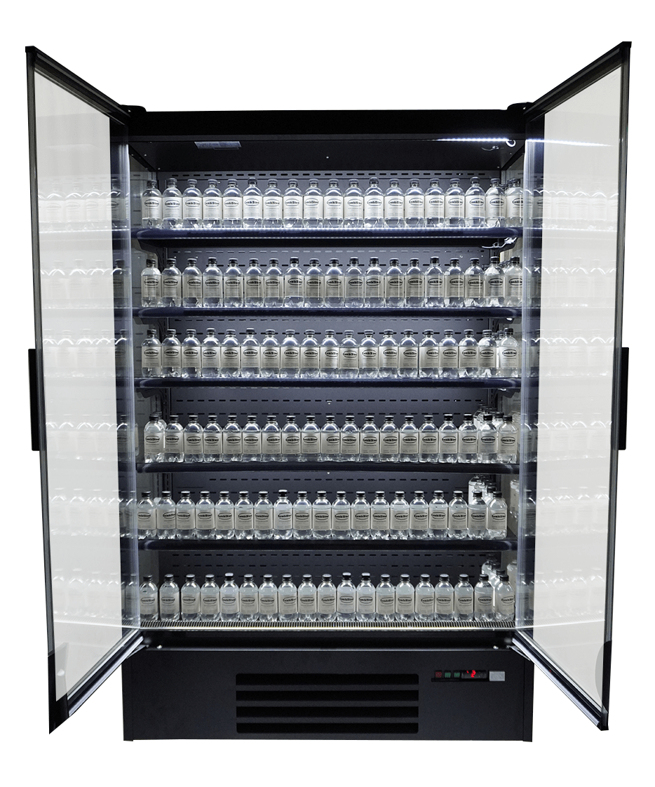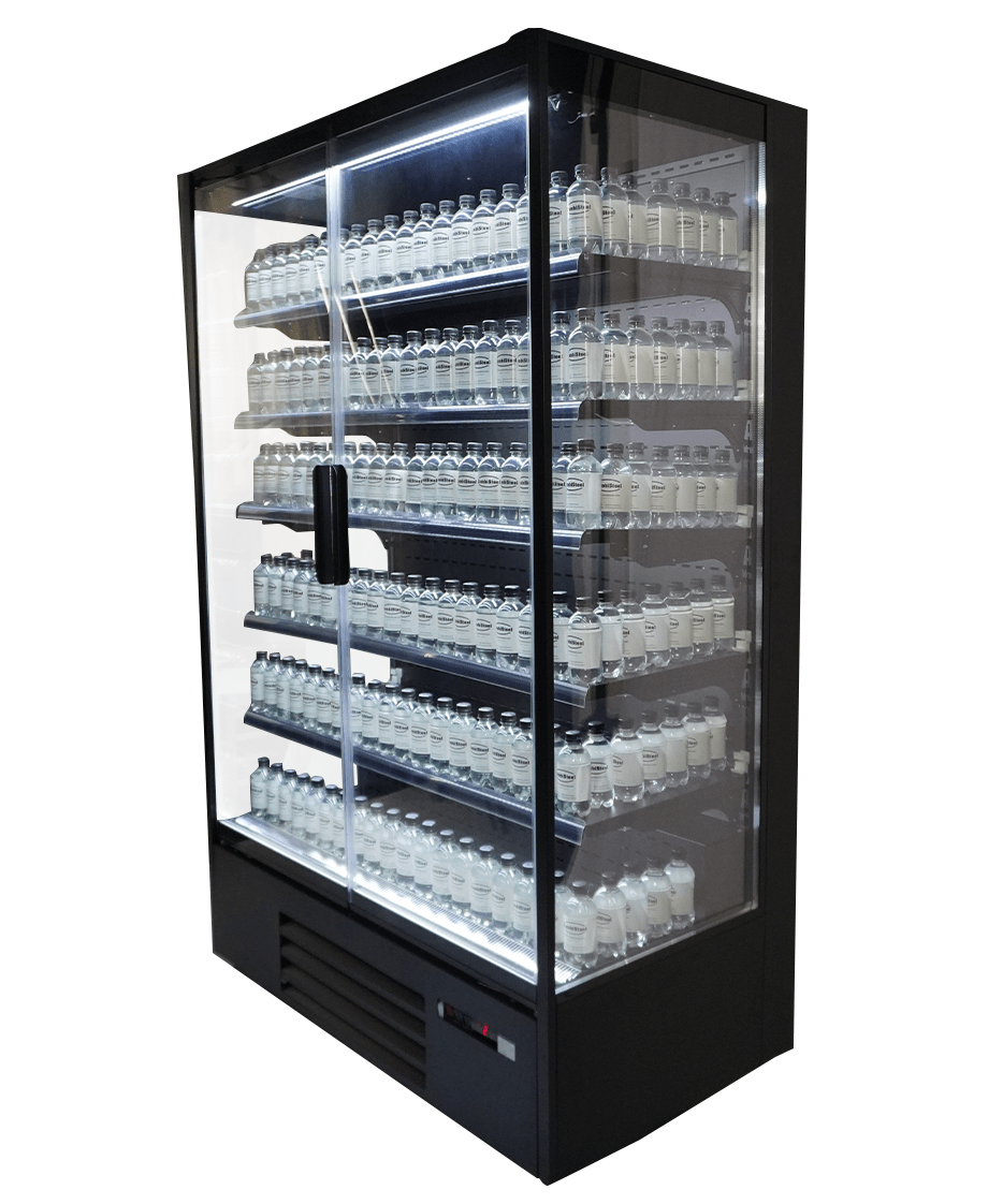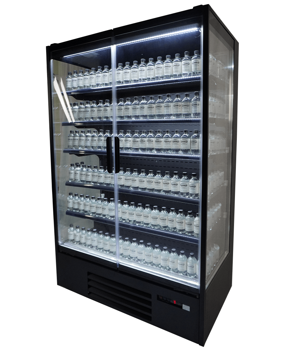 Ce modèle autoportant au design raffiné, avec sa finition noire, ses 2 portes vitrées à fermeture automatique et ses 5 étagères réglables, est parfait pour présenter avec style vos produits frais comme les boissons, produits laitiers ou encas. Les étagères peuvent également être positionnées en biais, offrant une meilleure présentation et visibilité des produits. Dotée d’un système de refroidissement à air forcé et de dégivrage automatique, elle garantit des performances constantes avec un minimum d’entretien. L’éclairage LED puissant sous chaque étagère améliore la visibilité des produits, tandis que le réfrigérant écologique R290 contribue à vos objectifs de durabilité. Conçue pour des environnements jusqu’à 25°C, c’est une solution plug-and-play pour tout espace professionnel. Dimensions : 1310x740x2010 mm (LxPxH) – consommation 0,55 kW – capacité 1292 litres – température +2/+8ºC – surface d’exposition 3,14 m² – poids 260 kg.