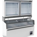 Ce congélateur innovant combine deux compartiments distincts : en haut, un congélateur ventilé, et en bas, un congélateur statique. Le congélateur supérieur ventilé garantit une circulation d’air efficace et un refroidissement rapide, tandis que le congélateur statique inférieur assure une congélation fiable et homogène. Les portes vitrées de la partie supérieure offrent une vue claire sur le contenu, avec tous vos produits à hauteur des yeux. L’entretien est facilité grâce au système de dégivrage automatique. L’éclairage LED écoénergétique met en valeur vos produits, tandis que son design s’intègre parfaitement dans un espace moderne. Dimensions : 2104x890x2110 mm (LxPxH) – consommation : 1.29 kW – capacité : 546 / 900 litres – température : -18°C – poids : 391 kg.