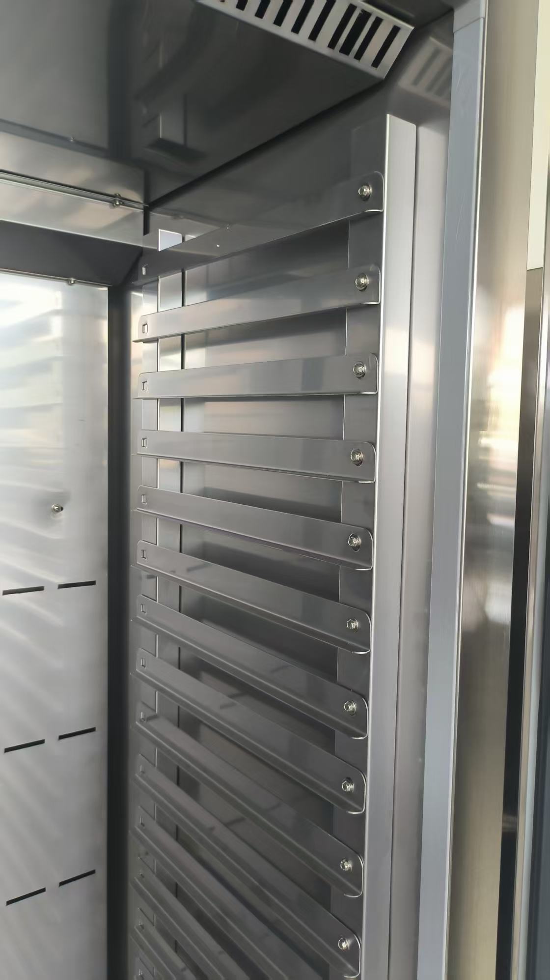 Ce chariot froid professionnel est idéal pour conserver et transporter de grandes quantités de plats préparés à la bonne température. Avec une capacité de 20x 2/1 GN, il est parfait pour les cuisines très actives, le catering ou les salles de banquet. La réfrigération ventilée assure une répartition homogène de la température dans tout le meuble, tandis que les roues robustes et le pare-chocs protecteur facilitent un déplacement sûr même lorsqu’il est entièrement chargé. La structure en acier inoxydable rend ce chariot durable et facile à nettoyer. Dimensions 877x900x2030 mm (LxPxH) – capacité 540 litres – température -2/+8°C.