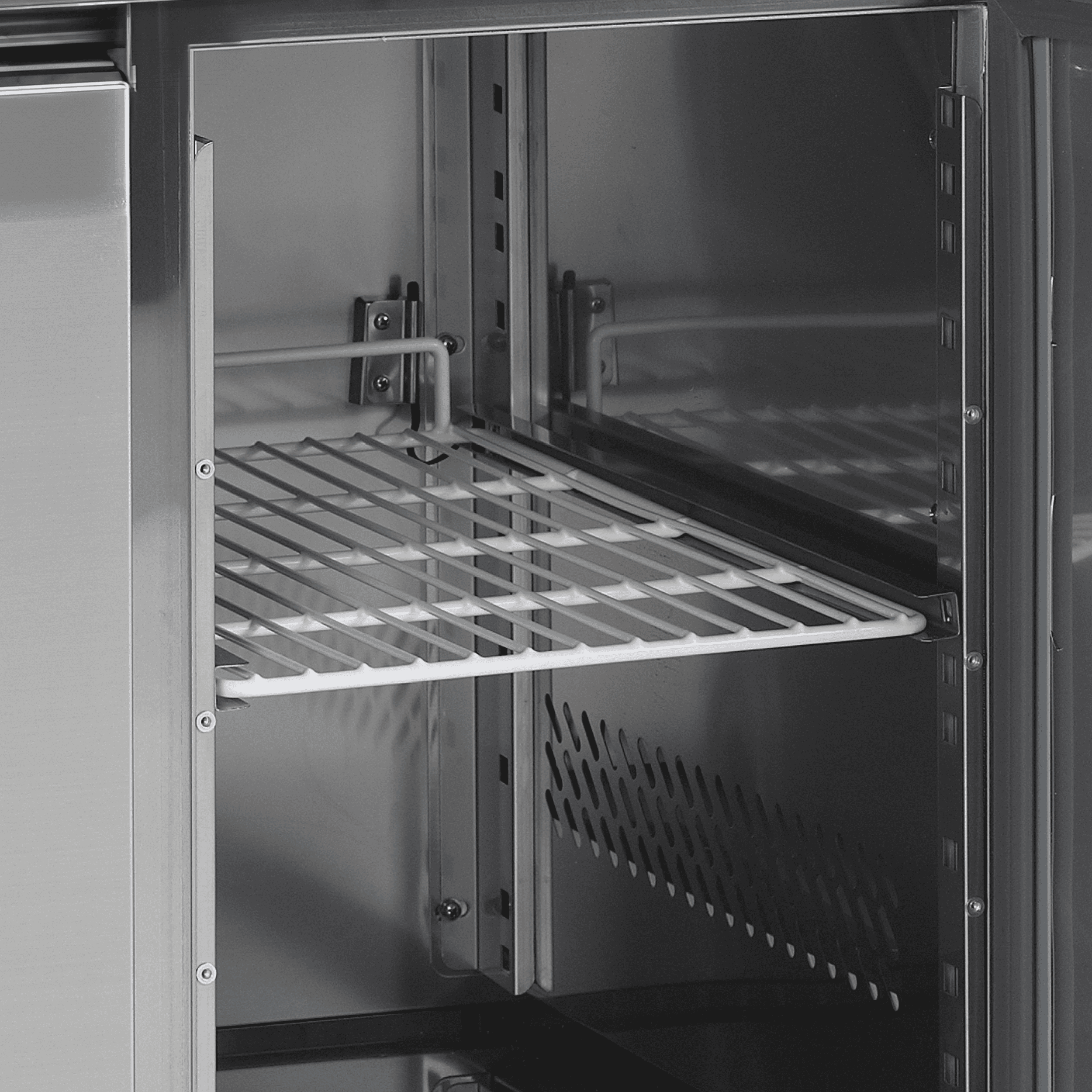 La gamme de comptoirs congélateurs CF en acier inoxydable (SS304) est conçue pour les cuisines professionnelles et dispose donc de dimensions GN1/1. Les comptoirs sont disponibles en plusieurs tailles, allant de 2 à 4 portes. Vous pouvez choisir entre des modèles avec un plan de travail amovible, avec ou sans dosseret. Tous les modèles sont équipés d’un système de refroidissement ventilé afin de garantir une température homogène et constante.