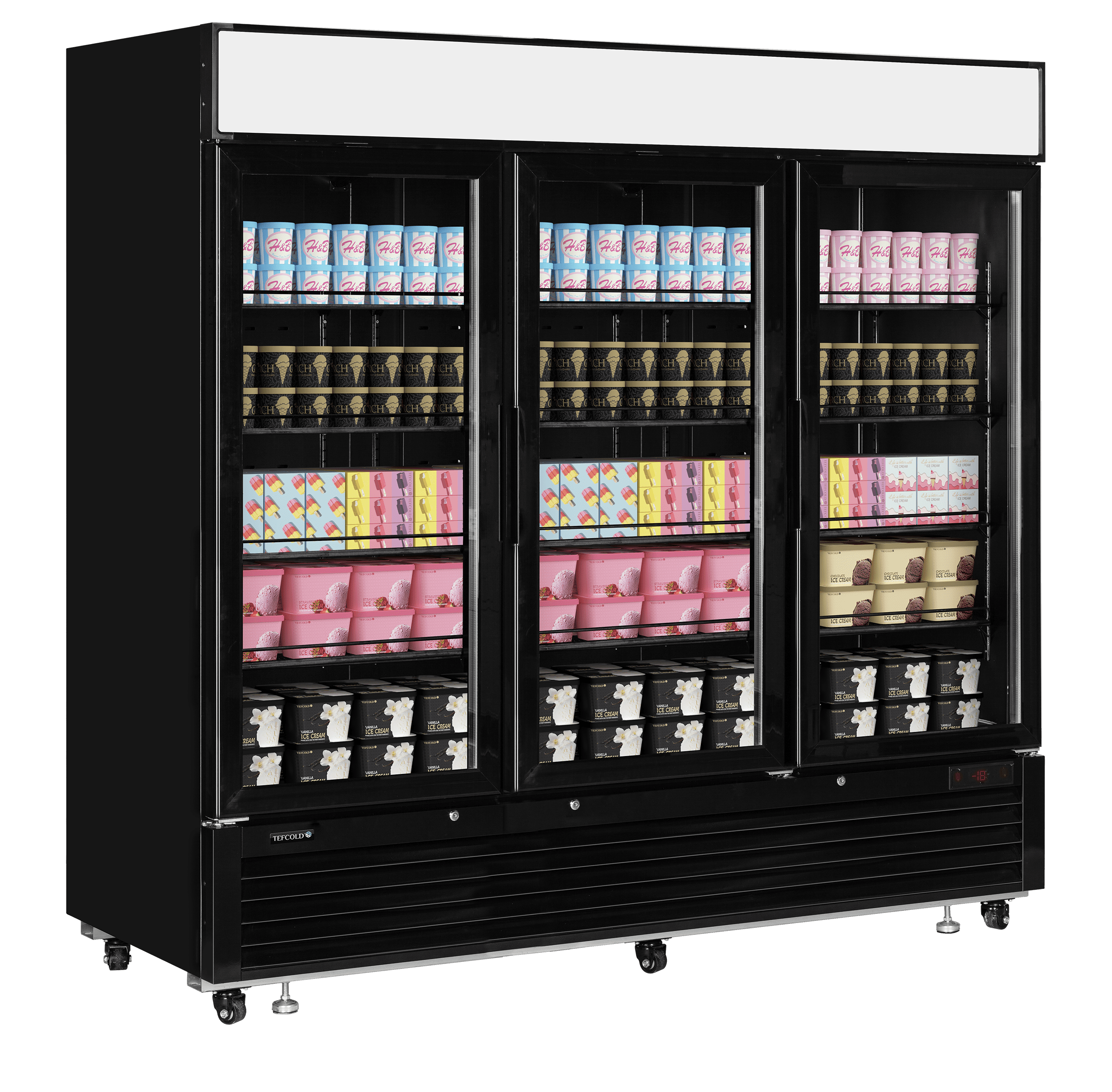 La gamme de vitrines froid négatif LGF-B est conçue pour une présentation élégante et basse consommation dans les environnements de vente au détail. Elle est disponible avec 1, 2 ou 3 portes. Elle est dotée de tablettes réglables, de portes vitrées chauffées, et de deux bandes LED par porte pour une présentation optimale des produits. Elle est équipée d’un caisson à éclairage LED idéal pour le branding et pour attirer l’attention. Bénéficiez de coûts d’exploitation très bas grâce à uu système de réfrigération particulièrement sobre, tout en conservant vos produits à la température idéale. Également disponible en version froid positif (LGC).