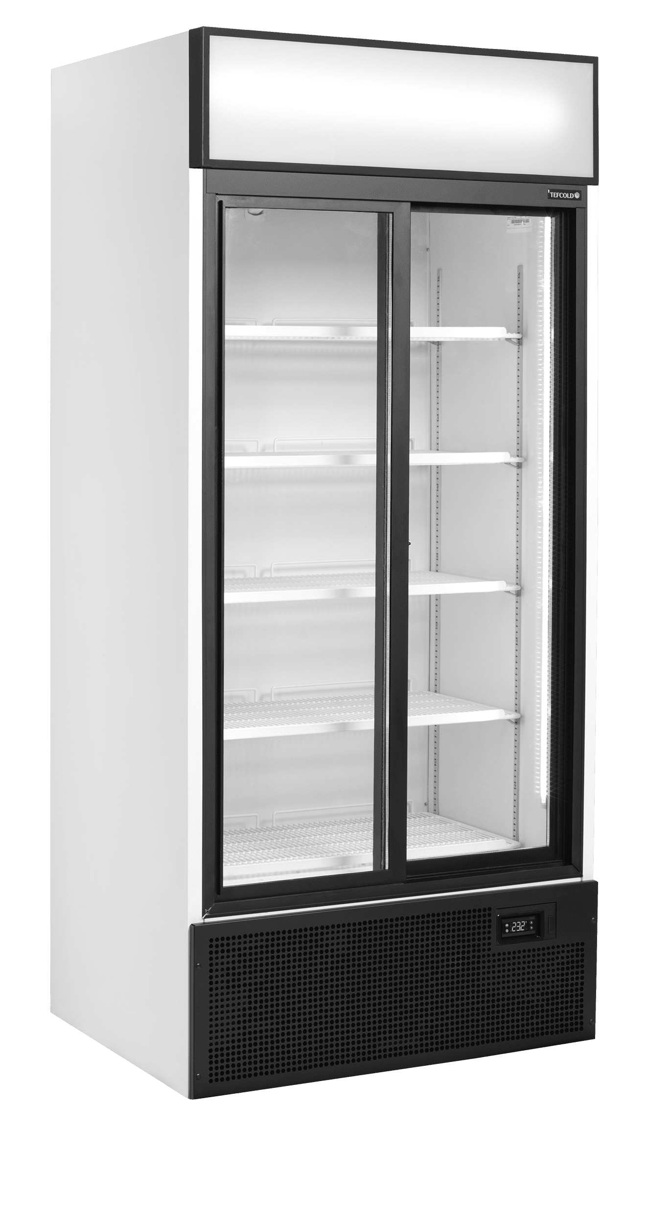 La gamme FSC de vitrines réfrigérées à 2 ou 3 portes avec caisson lumineux offre une solidité à toute épreuve pour un prix très compétitif. Finition au choix : extérieur blanc ou noir avec cadre aluminium noir pour les portes vitrées, battantes ou coulissantes. Grâce à ses tablettes réglables, la gamme FSC est une solution particulièrement flexible. Elle combine excellente présentation des produits et puissant groupe frigorifique à froid ventilé piloté par un thermostat électronique. De nombreux modèles sont également disponibles sans caisson lumineux (gamme FS).