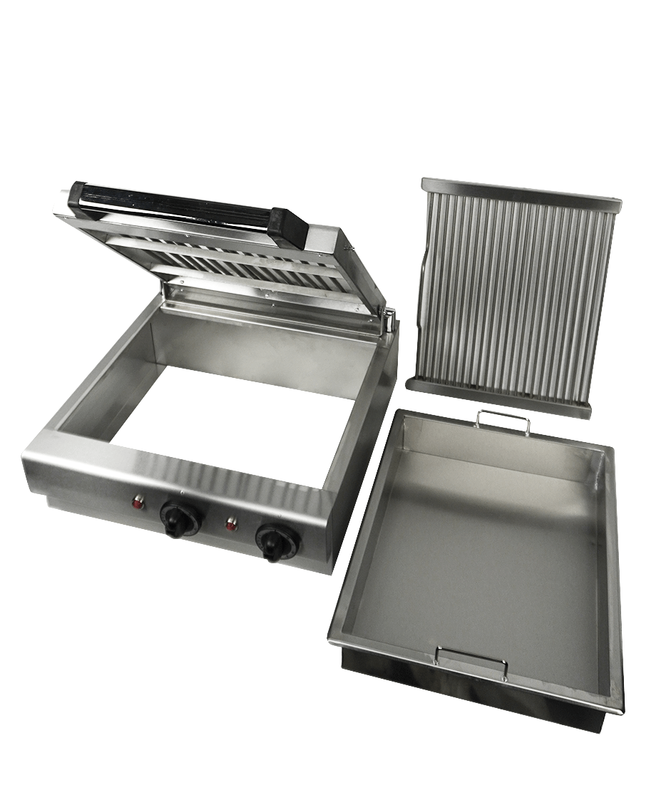 Le bac à eau situé sous la plaque de cuisson (410×340 mm) limite la fumée et maintient les aliments juteux, pour une cuisson plus saine et un environnement de travail plus agréable.