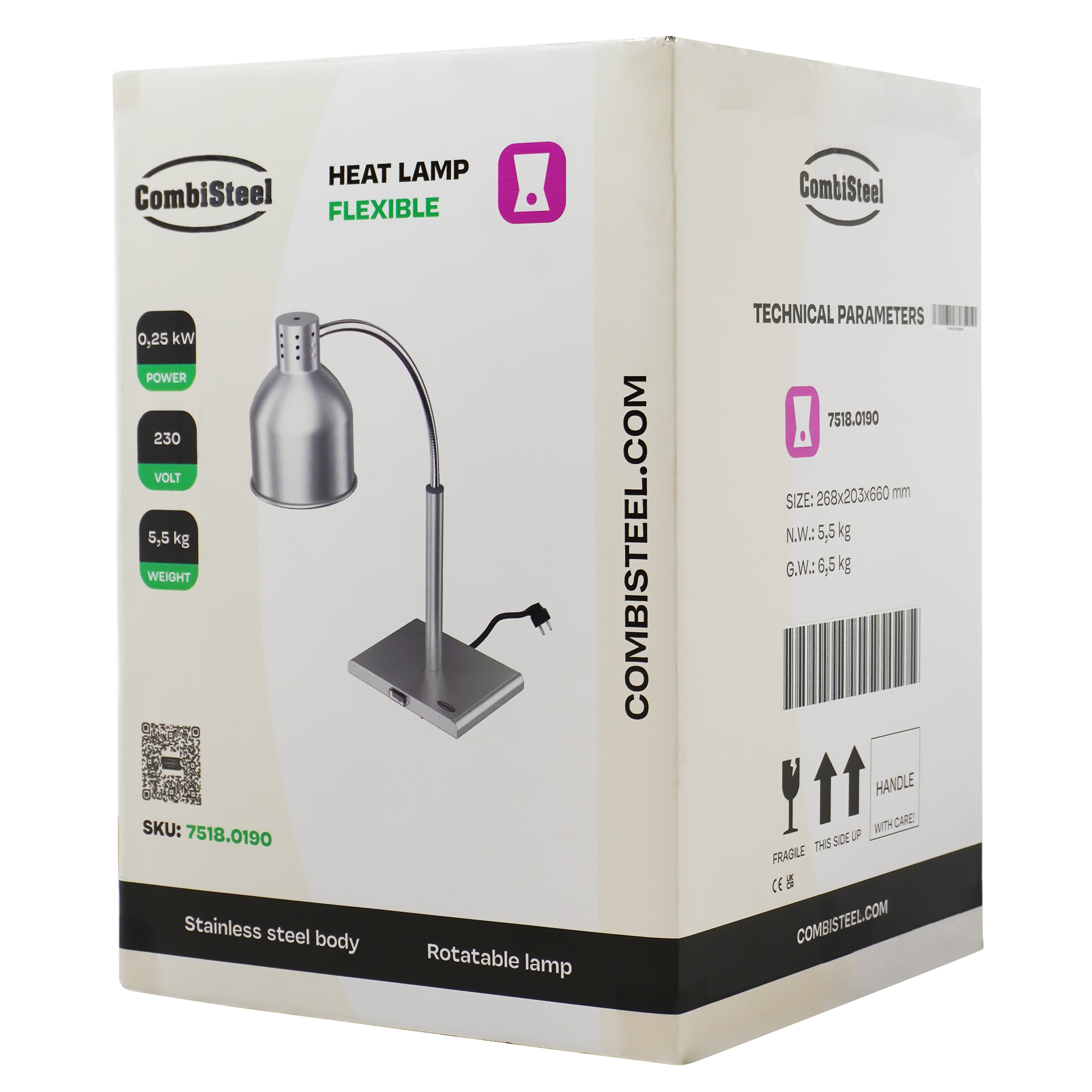 Notre lampe chauffante est un complément essentiel à toute cuisine professionnelle et à tout environnement de restauration. Cette lampe compacte et robuste est fabriquée en fer, ce qui garantit sa durabilité et sa stabilité. Grâce à sa lampe puissante, elle offre une distribution efficace de la chaleur, parfaite pour maintenir la température optimale de service, des entrées aux desserts, tout en préservant la fraîcheur et la saveur. Dimensions : 268x203x660 mm (LxLxH) – consommation : 0,25 kW – poids : 5.5 kg.