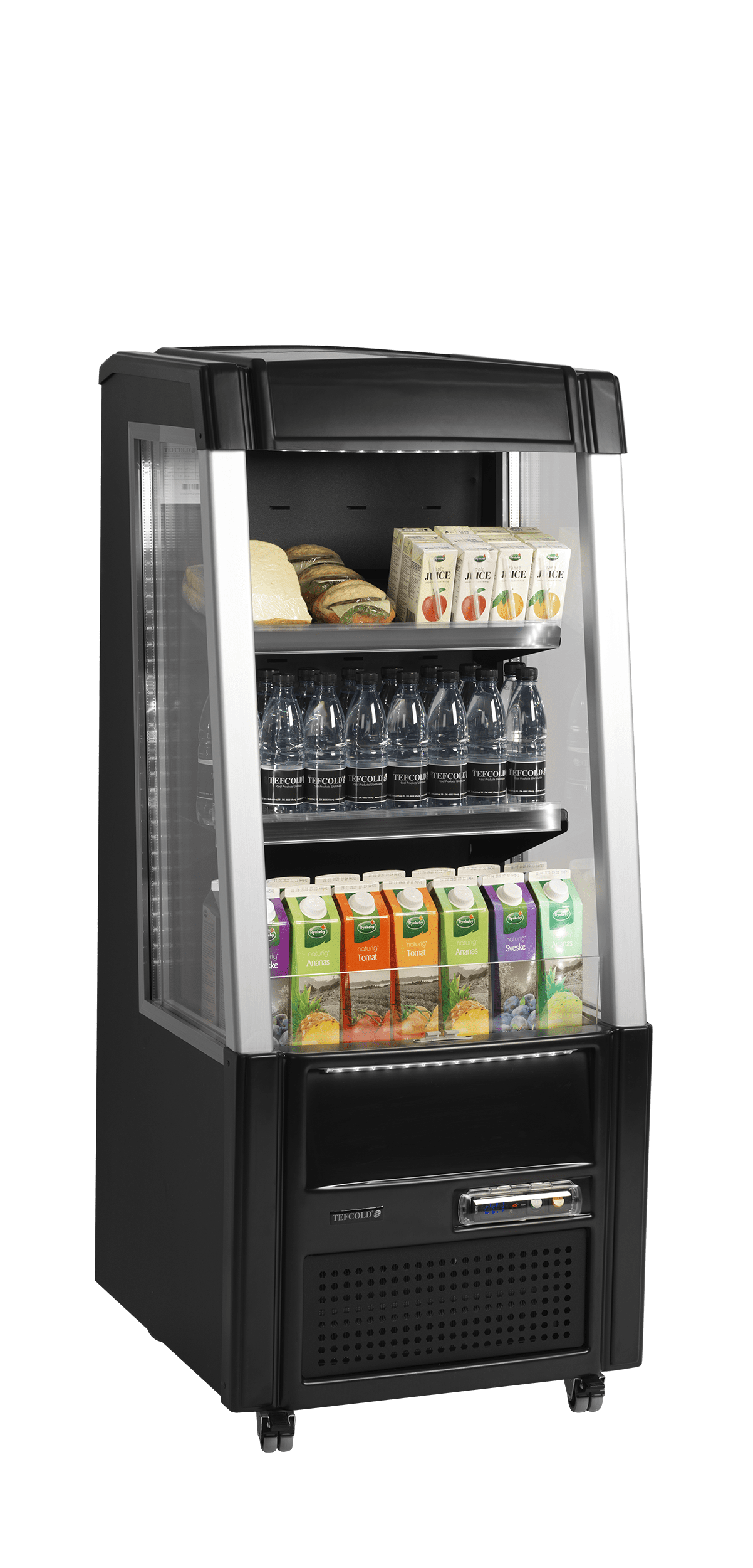 The ODC range of low open display coolers is perfect for stimulating impulse purchases. It is available in two sizes with a black or white interior. Exterior is black for all. All models are equipped with an effective ventilated cooling system to ensure an even and stable temperature throughout the unit. Complete with LED lighting and adjustable shelves with a tilting function to provide the best possible product presentation.
