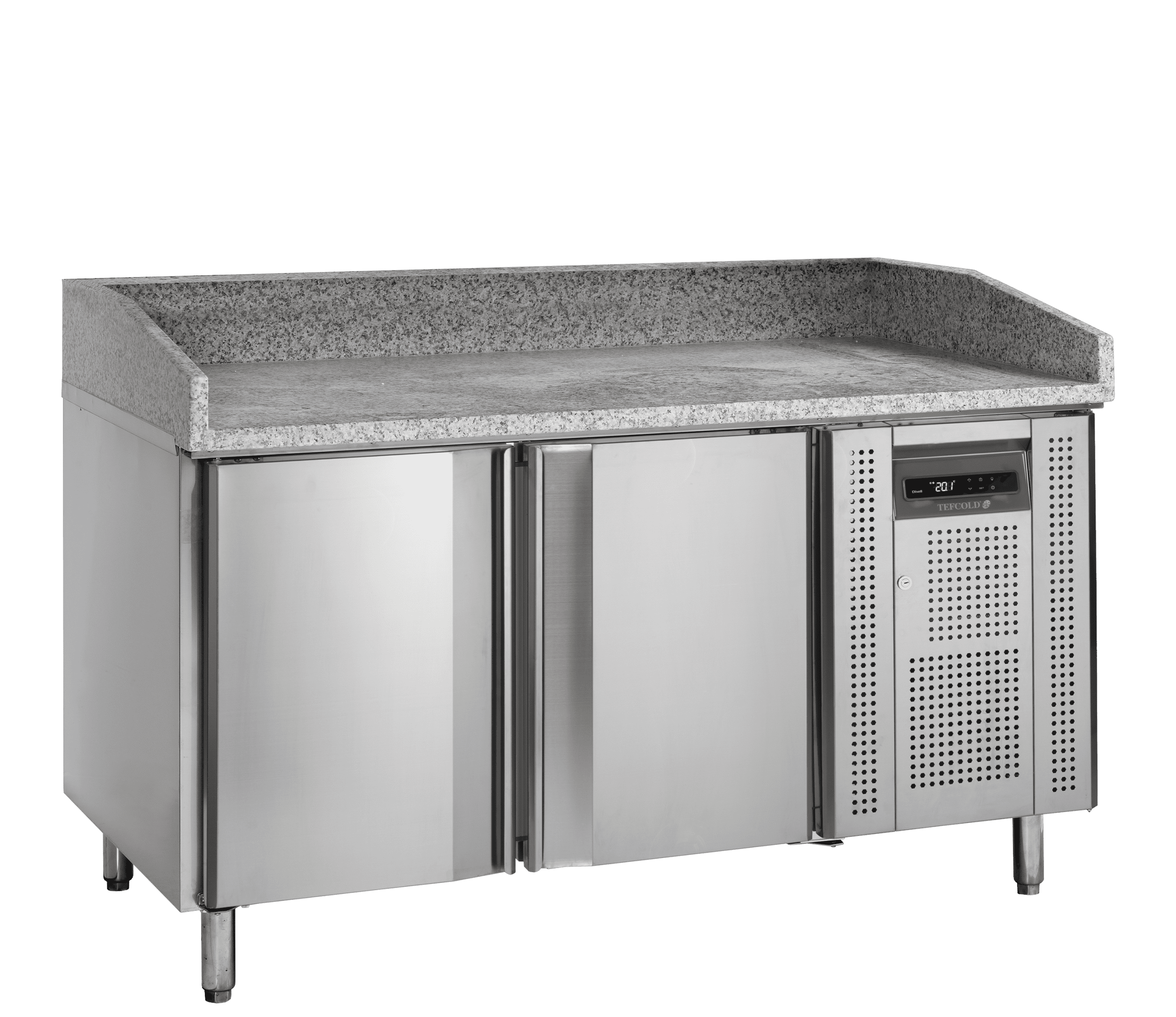 La gamme PT de meubles à pizza est fabriquée en acier inoxydable SS304. Son plan de travail en granite est idéal pour la préparation des pizzas : il reste froid pour empêcher la pâte de coller. Cette gamme est disponible en plusieurs tailles, avec 2 ou 3 portes. Il est également possible de la personnaliser avec des tiroirs. Fournie avec ou sans module pour garniture pour bacs GN – ces modules peuvent être ajoutés par la suite.