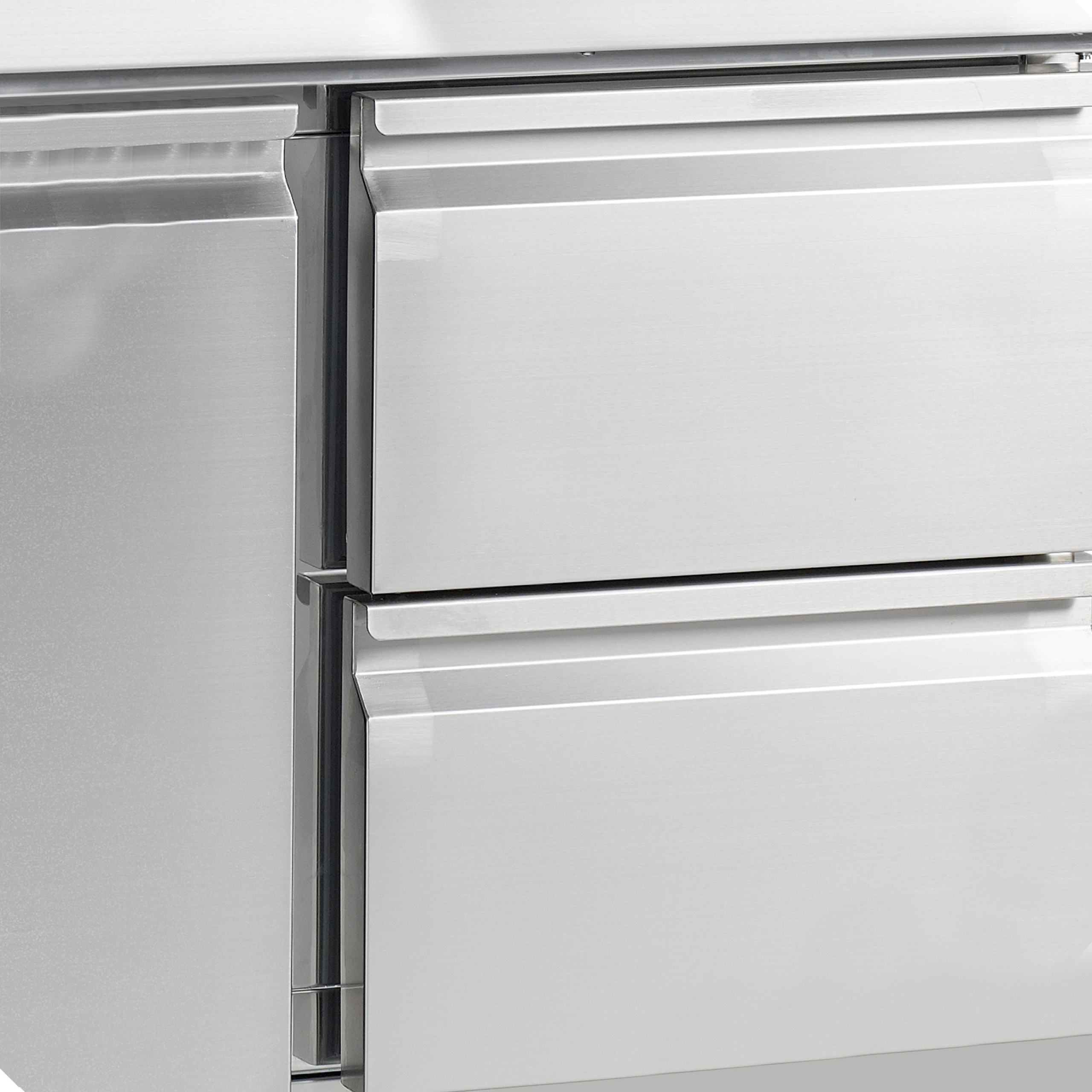 La gamme PT de meubles à pizza est fabriquée en acier inoxydable SS304. Son plan de travail en granite est idéal pour la préparation des pizzas : il reste froid pour empêcher la pâte de coller. Cette gamme est disponible en plusieurs tailles, avec 2 ou 3 portes. Il est également possible de la personnaliser avec des tiroirs. Fournie avec ou sans module pour garniture pour bacs GN – ces modules peuvent être ajoutés par la suite.