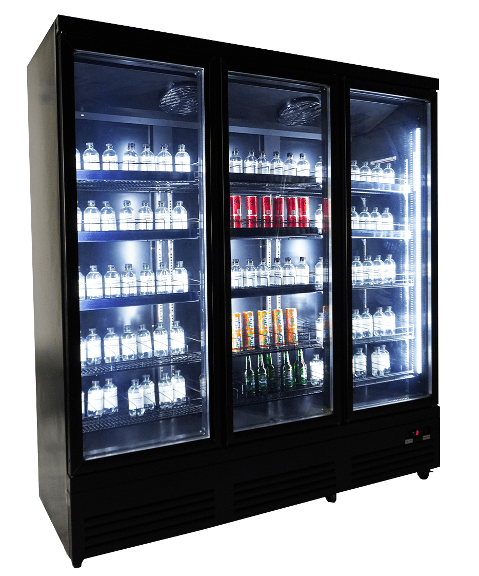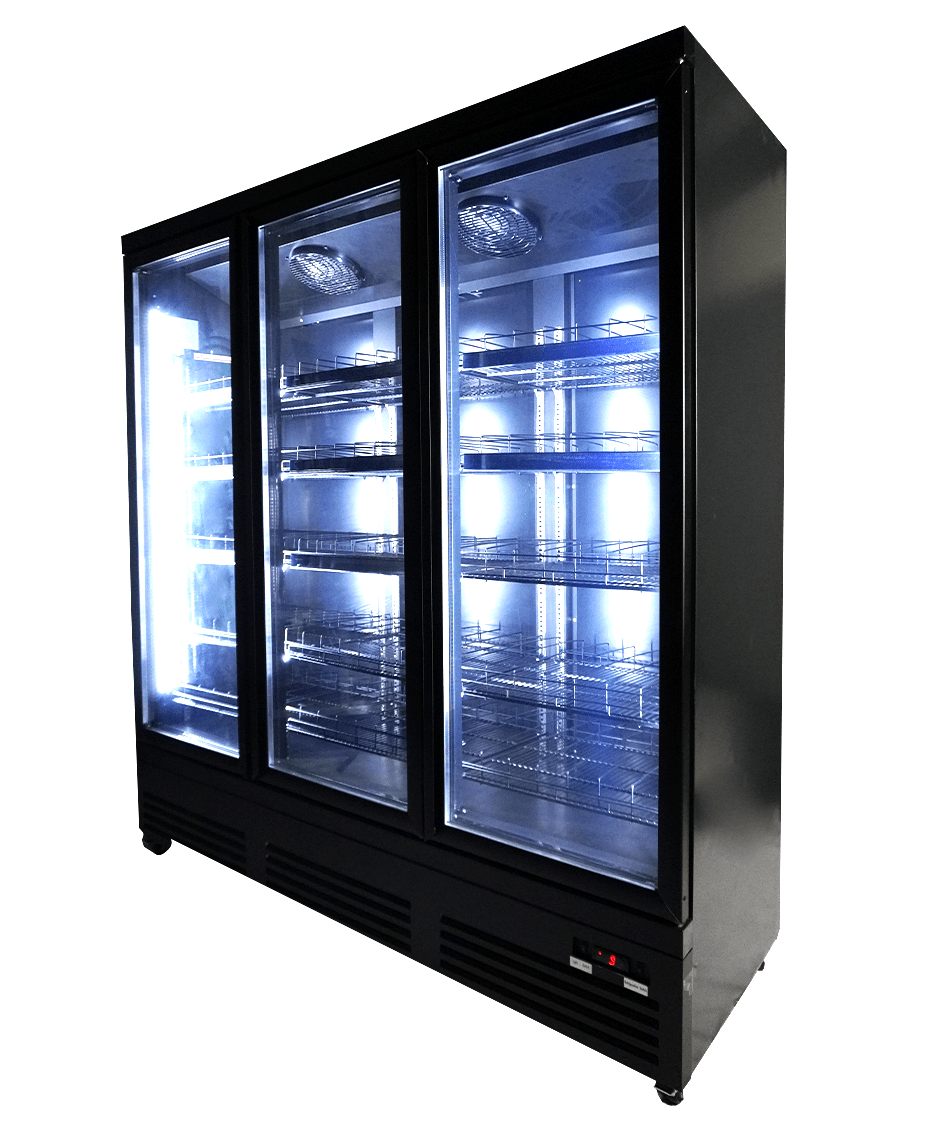 Découvrez notre impressionnant réfrigérateur noir avec 3 portes vitrées, spécialement conçu pour les supermarchés et les environnements professionnels !