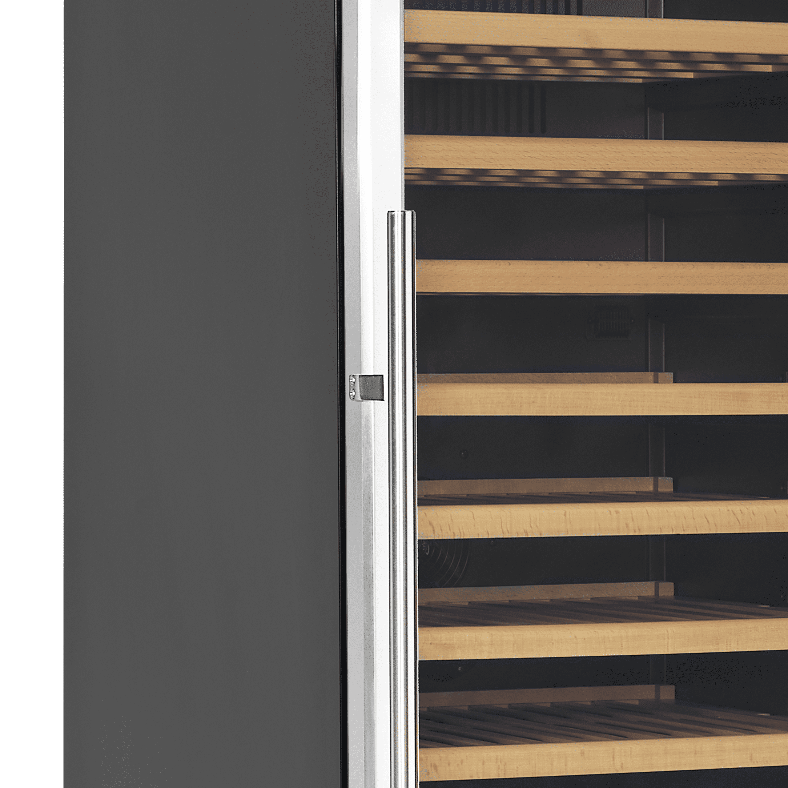 La gamme TFW-S de caves à vin en acier inoxydable est une solution de stockage et de présentation du vin au style contemporain. Il possède un design élégant avec une façade en acier inoxydable et une finition intérieure noire, un éclairage LED tout en douceur, et des tablettes en bois sur glissières.