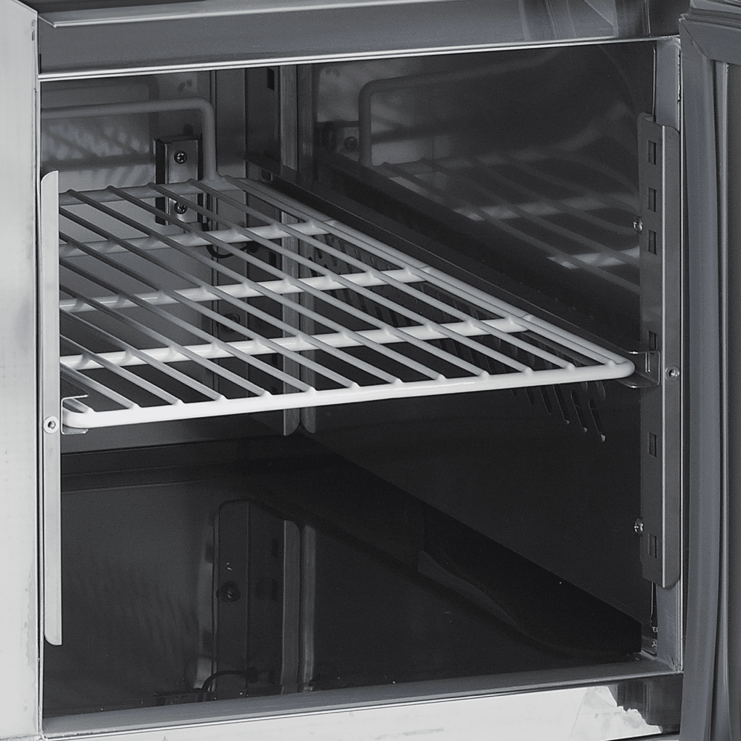 Avec ses tablettes aux dimensions GN 1/1, la gamme UC de dessous de comptoir est conçue pour les cuisines professionnelle.s Les réfrigérateurs sont fabriqués en acier inoxydable SS304 et sont disponibles en version 2, 3 ou 4 portes à fermeture automatique. Un système de froid ventilé garantit une descente en température rapide et une température homogène. Le thermostat électronique permet de régler la température. Également disponible avec des tiroirs à la place des portes.